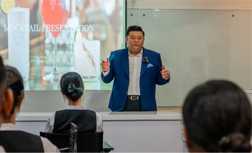 The session was filled with creativity, energy, and curiosity as students explored the art of crafting mocktails—from understanding classic mocktails, refinement, and flavour profiles to mastering presentation techniques. It was a rewarding experience for both our team and the students, offering a taste of real-world hospitality in a fun and educational setting, to a group of 14 students from the Diploma in Hotel Management, Semester 1. Up next, is a Module on Restaurant Service Operation.